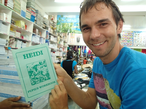 Es sind gerade große Schulferien und das nächste Semester steht vor der Tür, da sind Schulutensilien immer eine sinnvolle Unterstützung. Wir haben zwei Tage hintereinander den Buchladen besucht denn 140 Schulhefte im Rucksack nach Hause schleppen ist anstrengend. Die Bleistifte, Radiergummis und die Spitzer sind zum Glück etwas leichter.